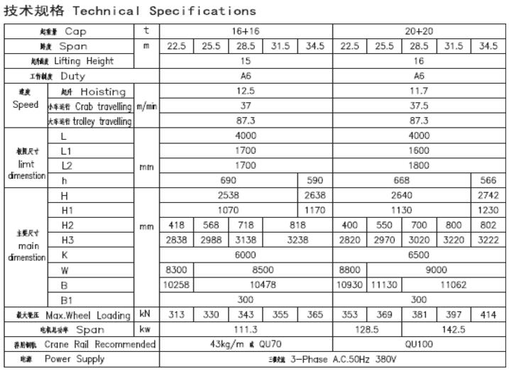 2、 本起重机起重量包含电磁铁自重,起重机总重不包含电磁铁自重。