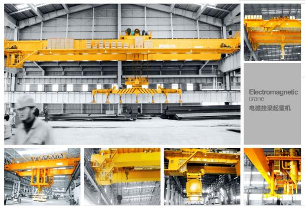 1、 本起重机带有可拆卸的电磁盘,特别适用于搬运具有导磁性的黑色金属制品与材料,如钢锭、型钢、生铁块等。主要用于钢铁企业轧线、成品库,船厂钢料堆场、下料车间等。